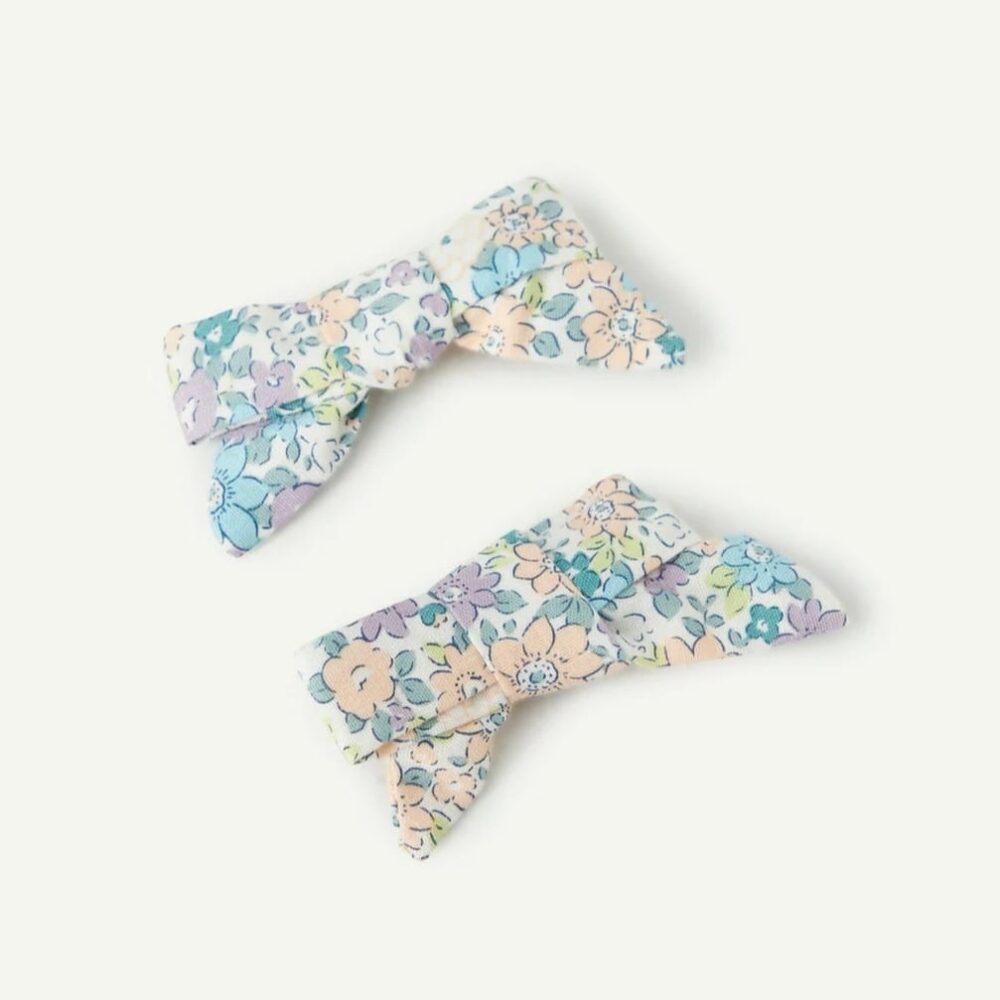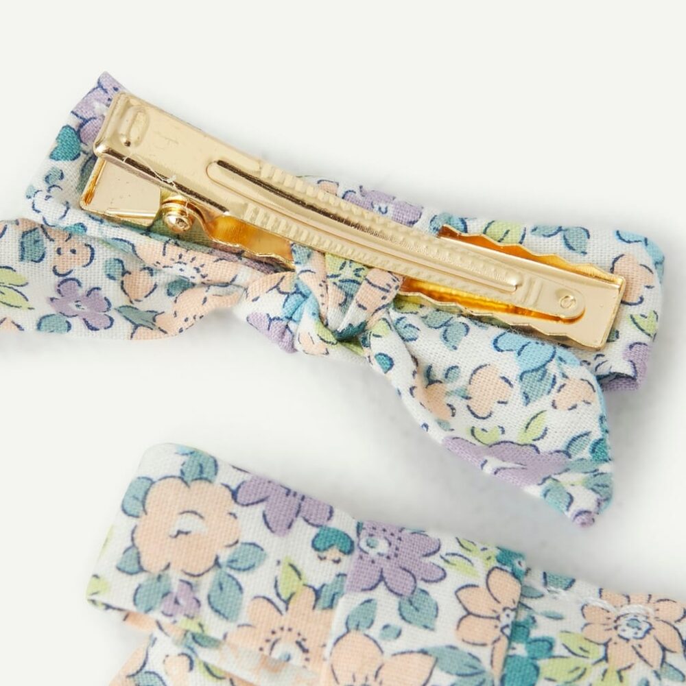 Set of 2 baby girl barrettes with floral print bows