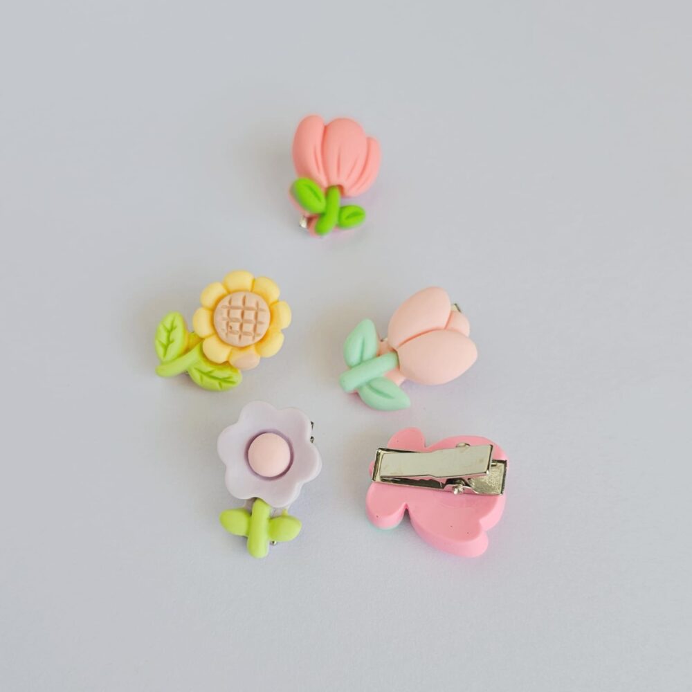 3 3d rubber flowers small hairclips pack