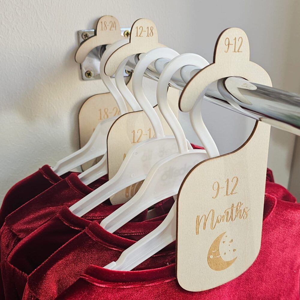 Wooden Baby Closet Size Dividers – Neutral Engraved Set