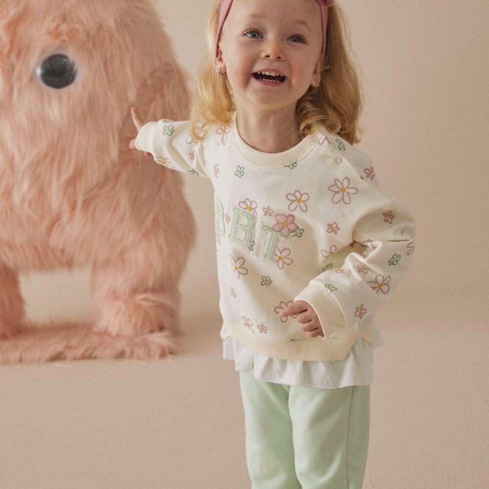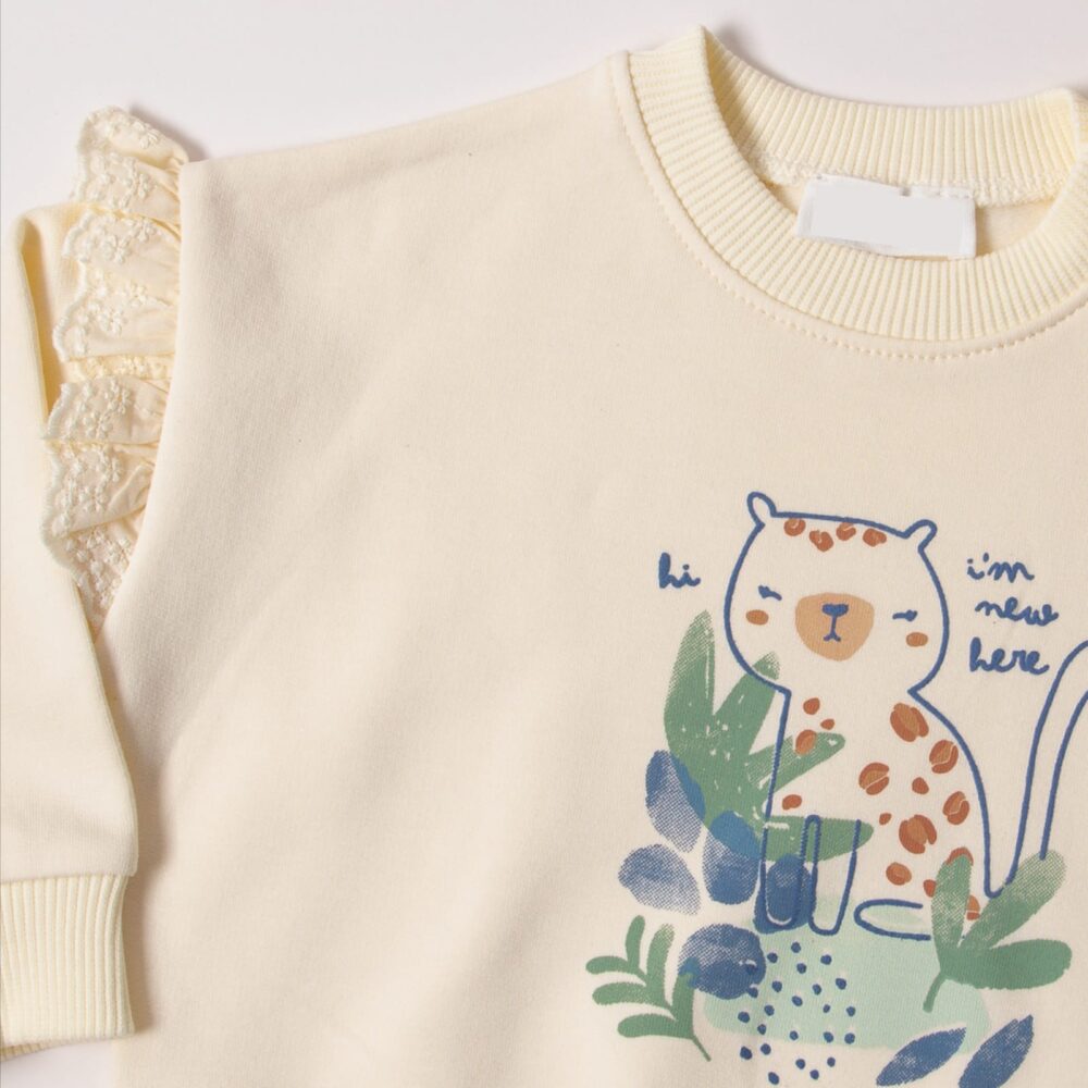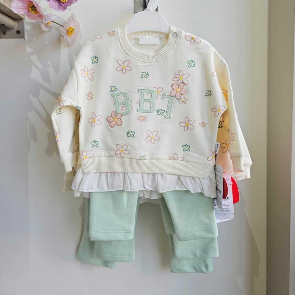 Floral ruffled 2 pcs mint fleeced set