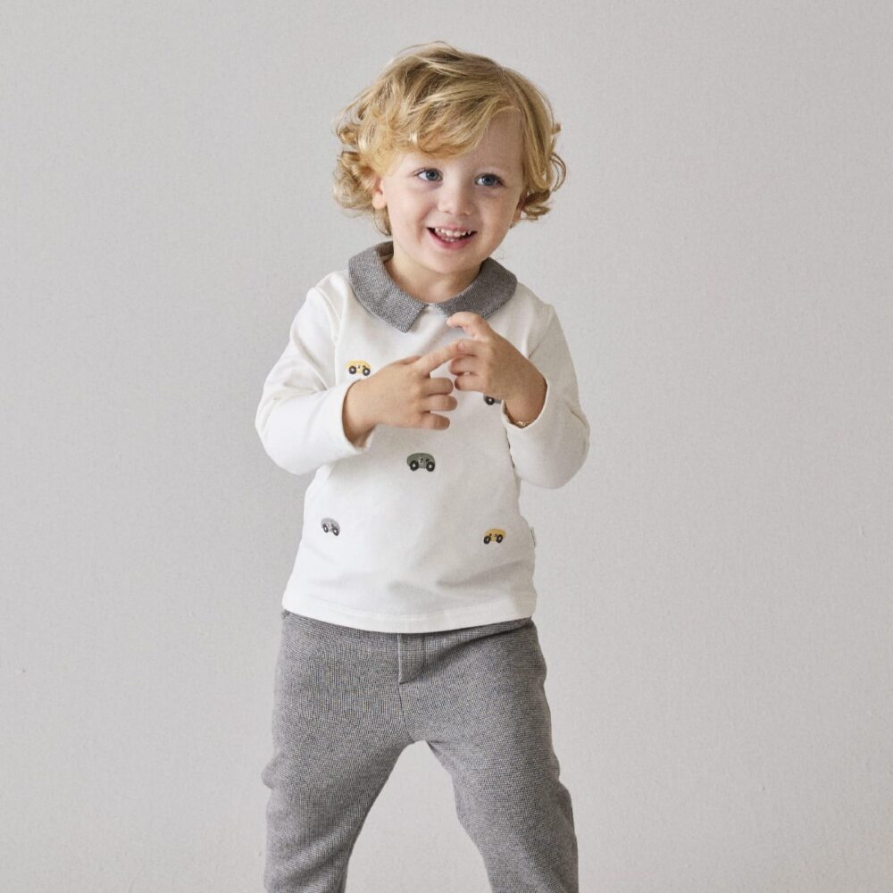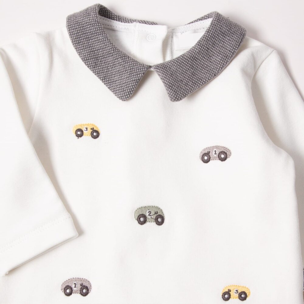 Gray & White Car Embroidered Baby Boy fleeced Set