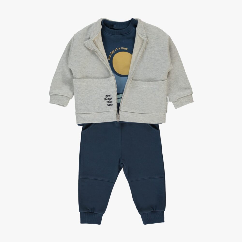 3 Piece Casual Comfy Set in Grey & Navy blue