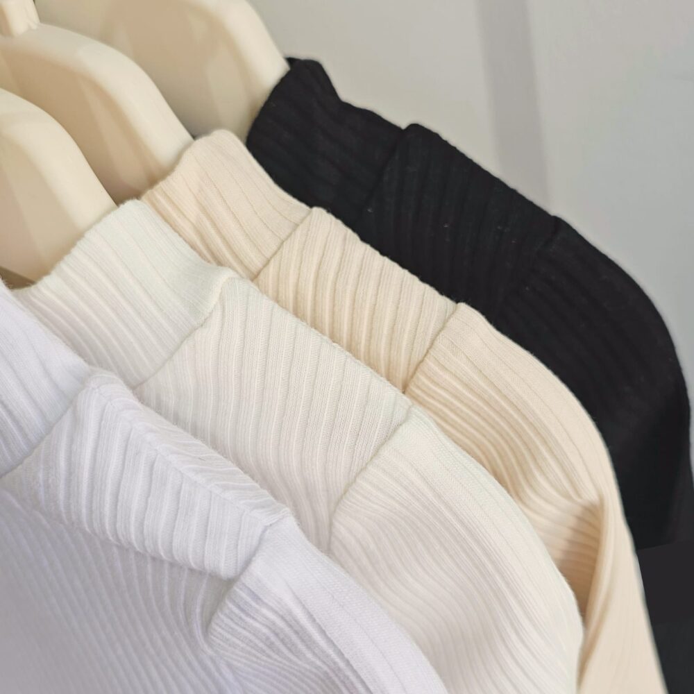 Offwhite cotton ribbed basic top