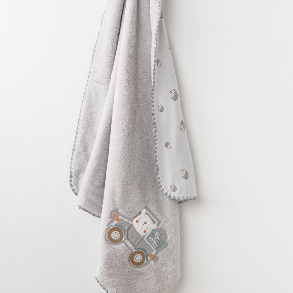 Gray fur train patterned blanket