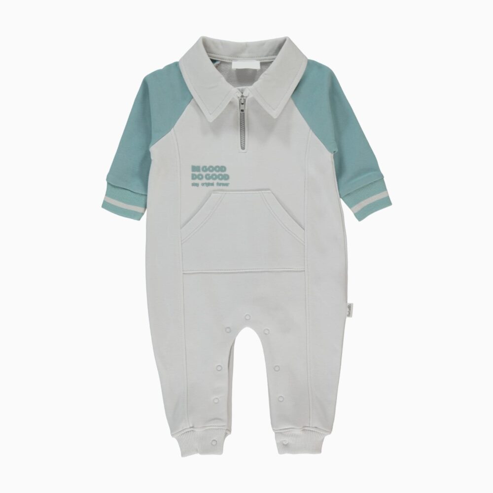 Unisex Grey Cotton Short-Sleeve Baby Romper