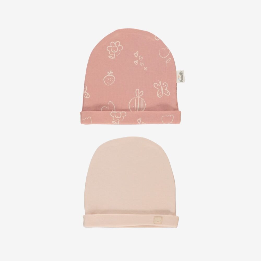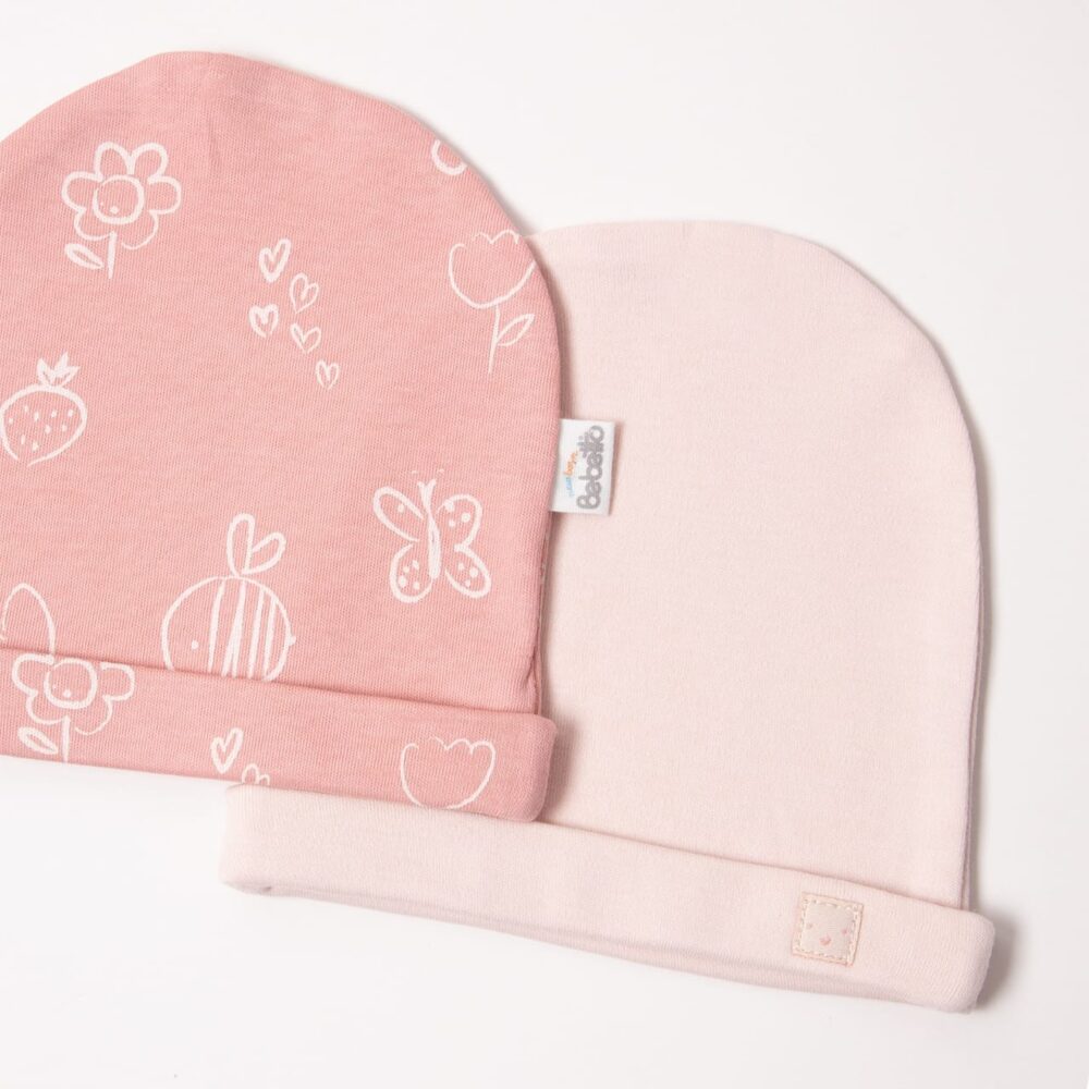 2 Delicate Pink Cotton Embroidery Bonnet Set