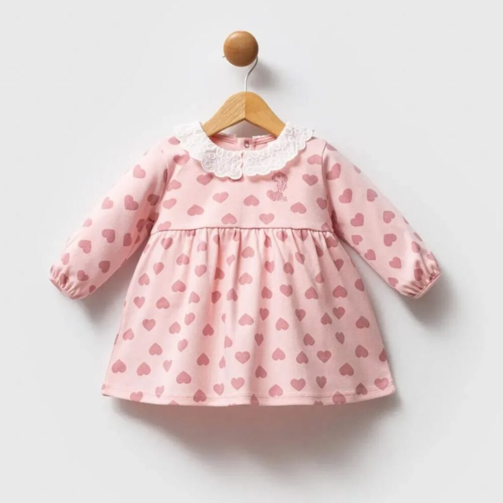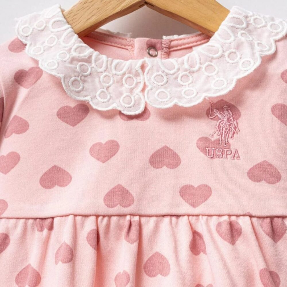 USPA heart printed pink dress with lace collar