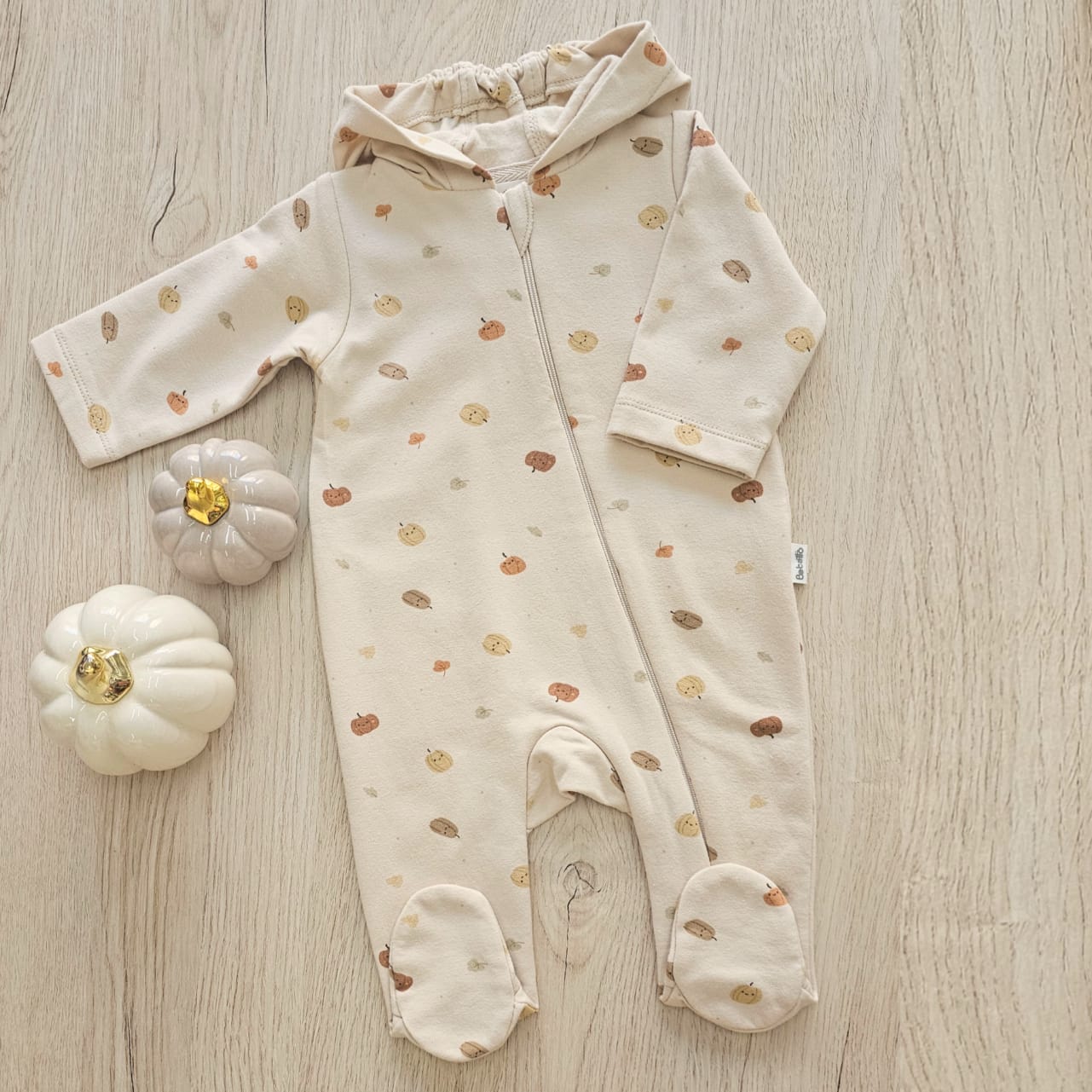 Wrap your little one in cozy comfort with this adorable autumn-inspired fleeced overall. Designed with a soft fleece interior and a charming pumpkin print, it keeps baby warm while feeling gentle on delicate skin. The practical front zipper allows for easy dressing and diaper changes, making it ideal for cooler days, outings, and snuggly moments at home.