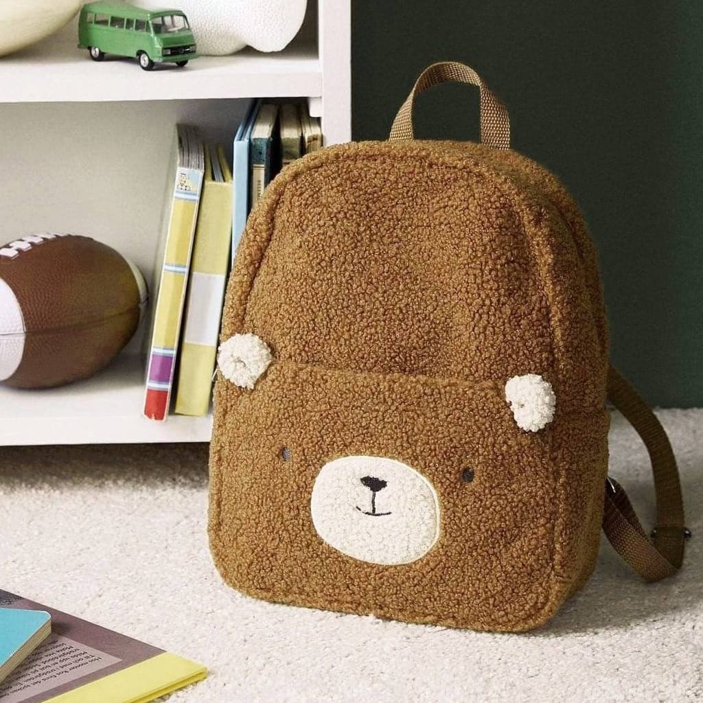 An irresistibly cute and cozy teddy bear backpack that brings warmth and charm to your little one’s day! Crafted from soft, fluffy sherpa fabric, it features a friendly bear face design with tiny 3D ears for an adorable touch with a hidden front packet behind it. Lightweight and comfortable, it includes adjustable shoulder straps and a top handle for easy carrying. Perfect for nursery, preschool, or fun outings — this bag is as huggable as it is practical.