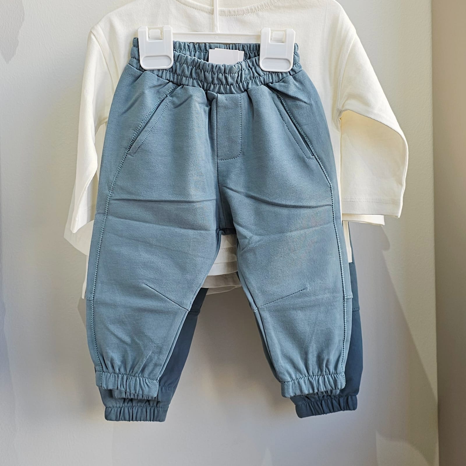 cotton 2 pcs set of long-sleeve t-shirt & teal pants quantity