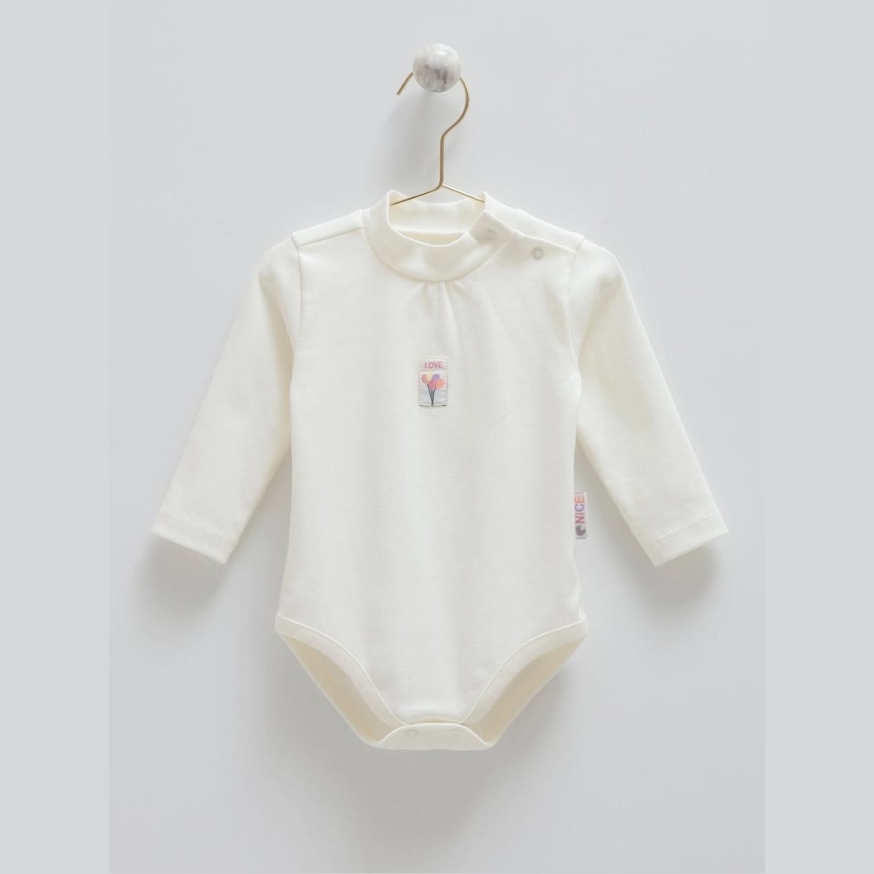 A gentle and timeless essential for your little one — this soft offwhite long-sleeve bodysuit is made from premium cotton to keep baby cozy and comfortable all day. Designed with delicate pleats at the neckline, shoulder snaps for easy dressing, and bottom snaps for quick diaper changes.