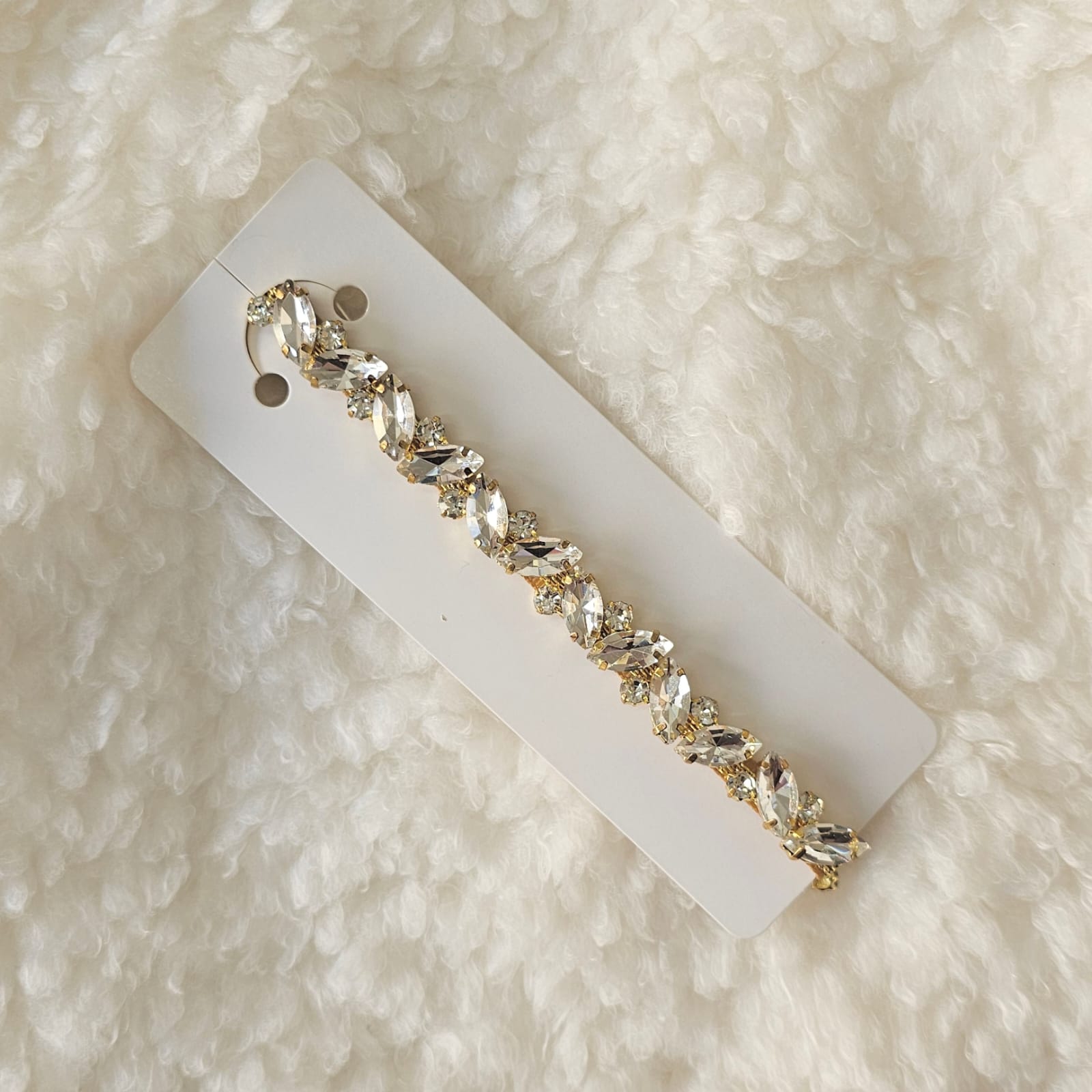 Elegant and eye-catching, this crystal leaf hair clip adds a sparkling touch to your little one’s look. Featuring clear marquise-cut crystals set on a golden base, it’s perfect for special occasions, photoshoots, or festive outfits. Fabric base under the metal masterpiece to make sure the baby is safe and comfy. it combines sophistication and elegance for a flawless finish.