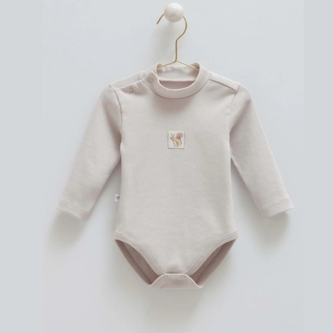 Gray thick ribbed cotton bodysuit with squirrel pattern