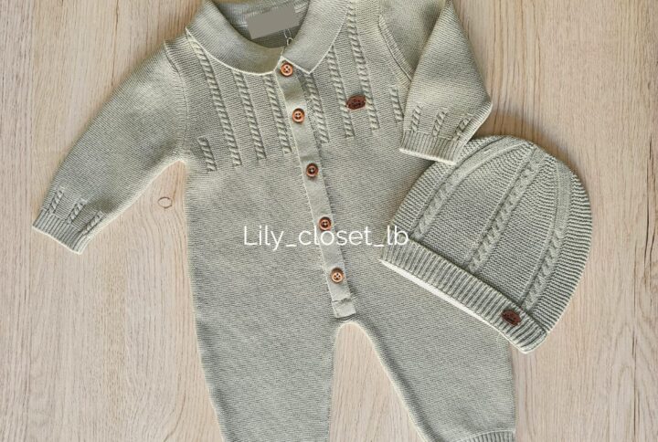 A beautifully crafted three-piece knitted cotton set designed for newborn comfort and timeless elegance. Made from premium, ultra-soft knitted cotton in a warm beige tone, this set offers a gentle, breathable, and cozy feel that is perfect for delicate baby skin.