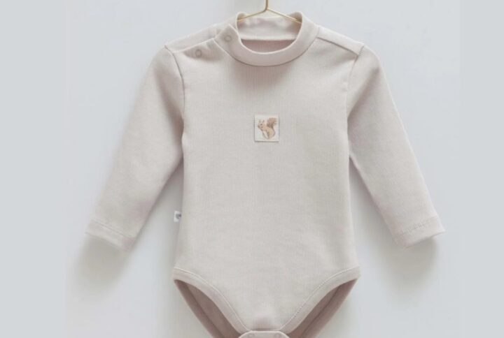 Beige thick ribbed cotton bodysuit with squirrel pattern