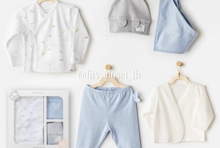 This delicate 5-piece newborn girl set is a perfect blend of comfort and charm. It includes a lilac-trimmed printed wrap top with ruffled hem, solid lilac pants with a soft elastic waistband, a plain white cardigan, a knotted turban hat, and a matching headband with floral detail. Thoughtfully packaged, this set is ideal for gifting or bringing your baby home in style. Crafted from gentle, breathable cotton for all-day coziness.