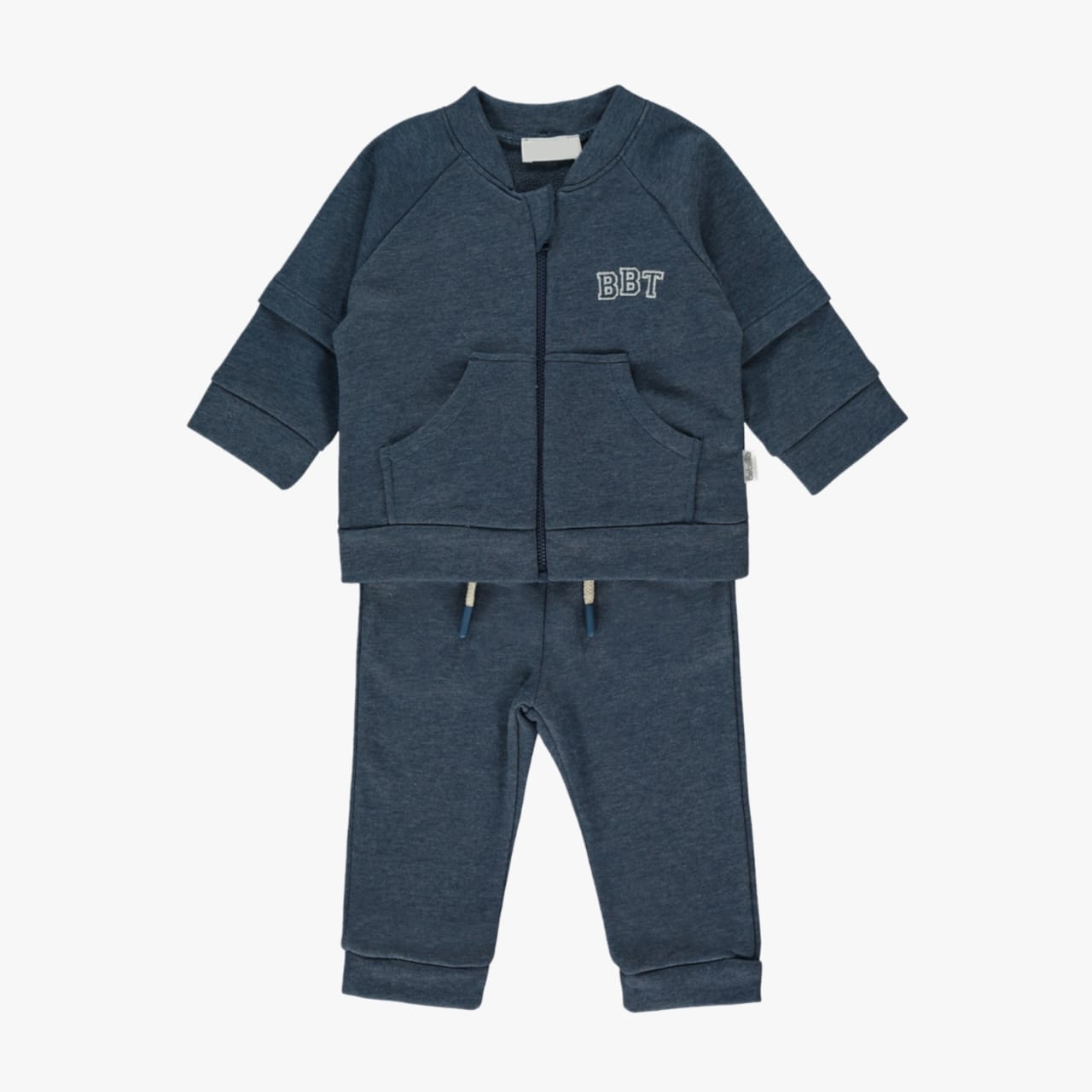 A stylish 2-piece set made of triple-thread cotton, offering a soft, warm & durable feel. The zip-up sweatshirt with front pockets pairs perfectly with the matching joggers for an easy everyday look. Designed for midseason and early winter days, keeping little ones comfy and free to move. Embroidered BBT detail adds a sporty touch.
