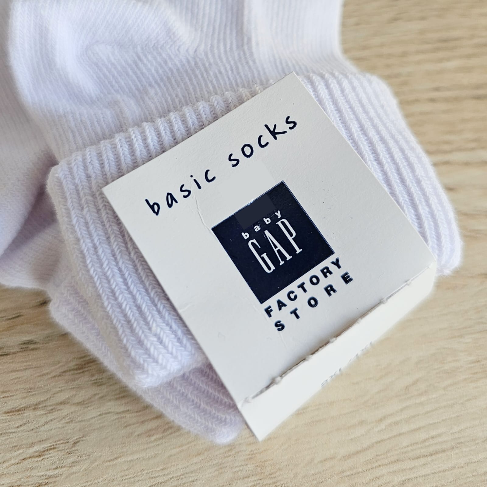 Keep your little one comfy and stylish with these classic BabyGap socks. Made from soft, breathable cotton blend, they feature a clean white design with “babyGap” non-slip branding . With a stretchy ribbed adjustable height cuffs. Perfect for everyday wear, these socks are a must-have essential for toddlers.