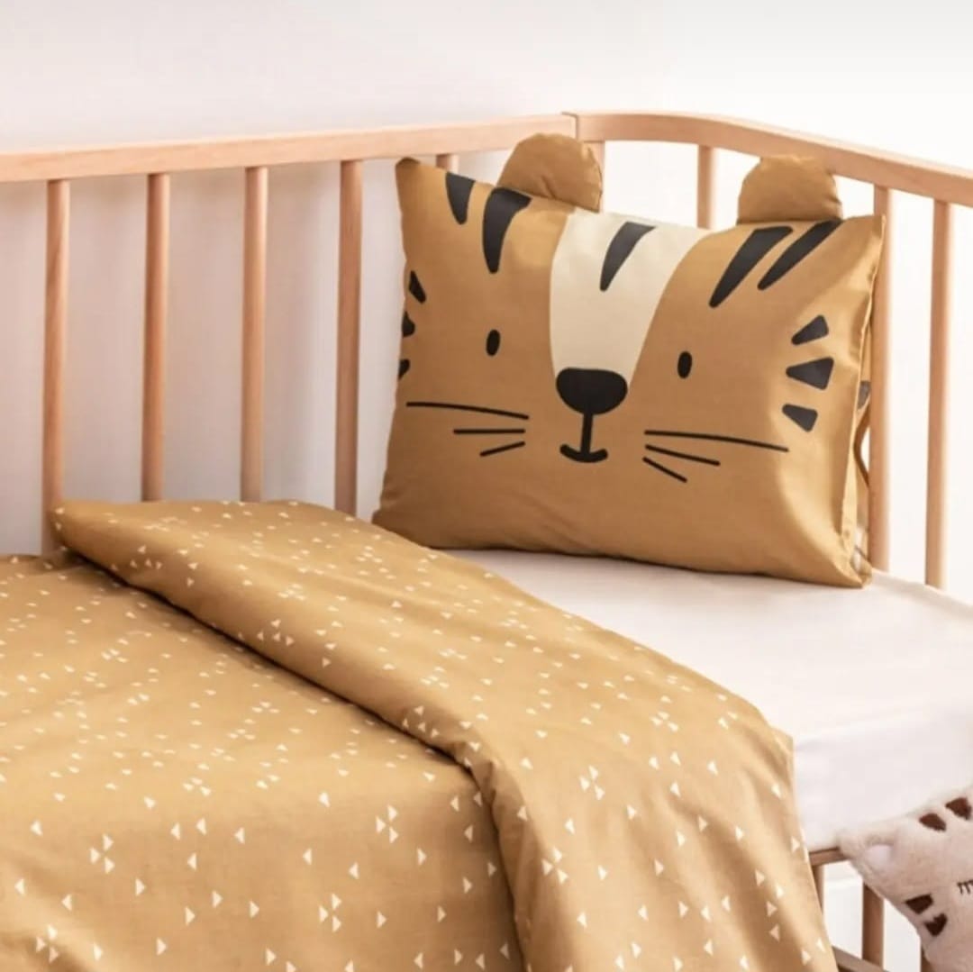Bring playful comfort to your baby’s room with this Tiger 3-Piece Bed Set. Designed in soft earthy tones, it features a cozy duvet cover with delicate patterns and a matching pillow with 3D tiger ears for an extra dose of cuteness. Perfect for keeping your little one snug, cozy, and happy through every nap and nighttime dream.