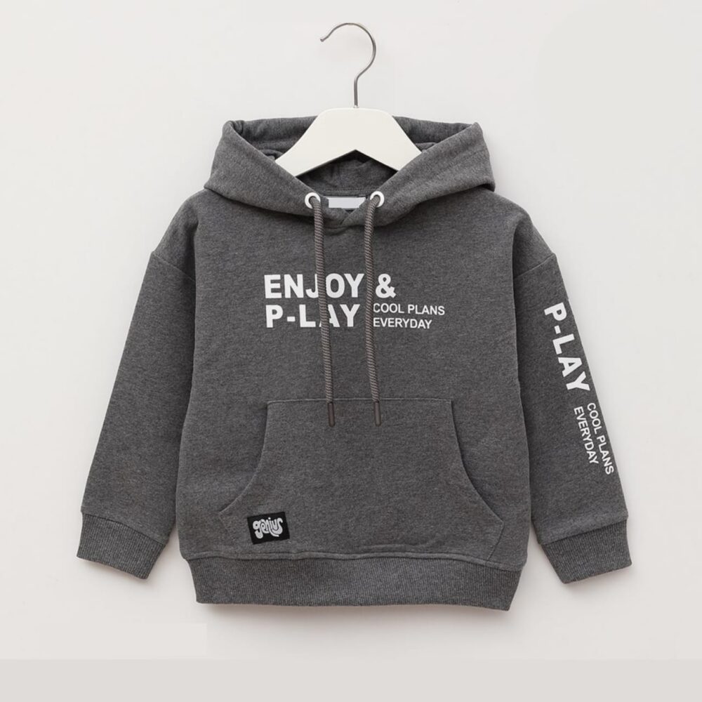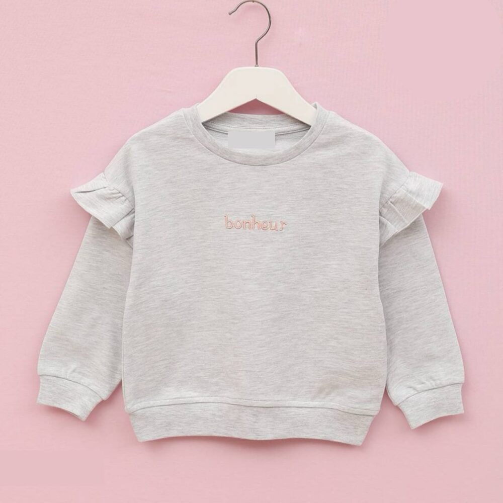 Gray “Bonheur” Ruffle Shoulder Sweatshirt