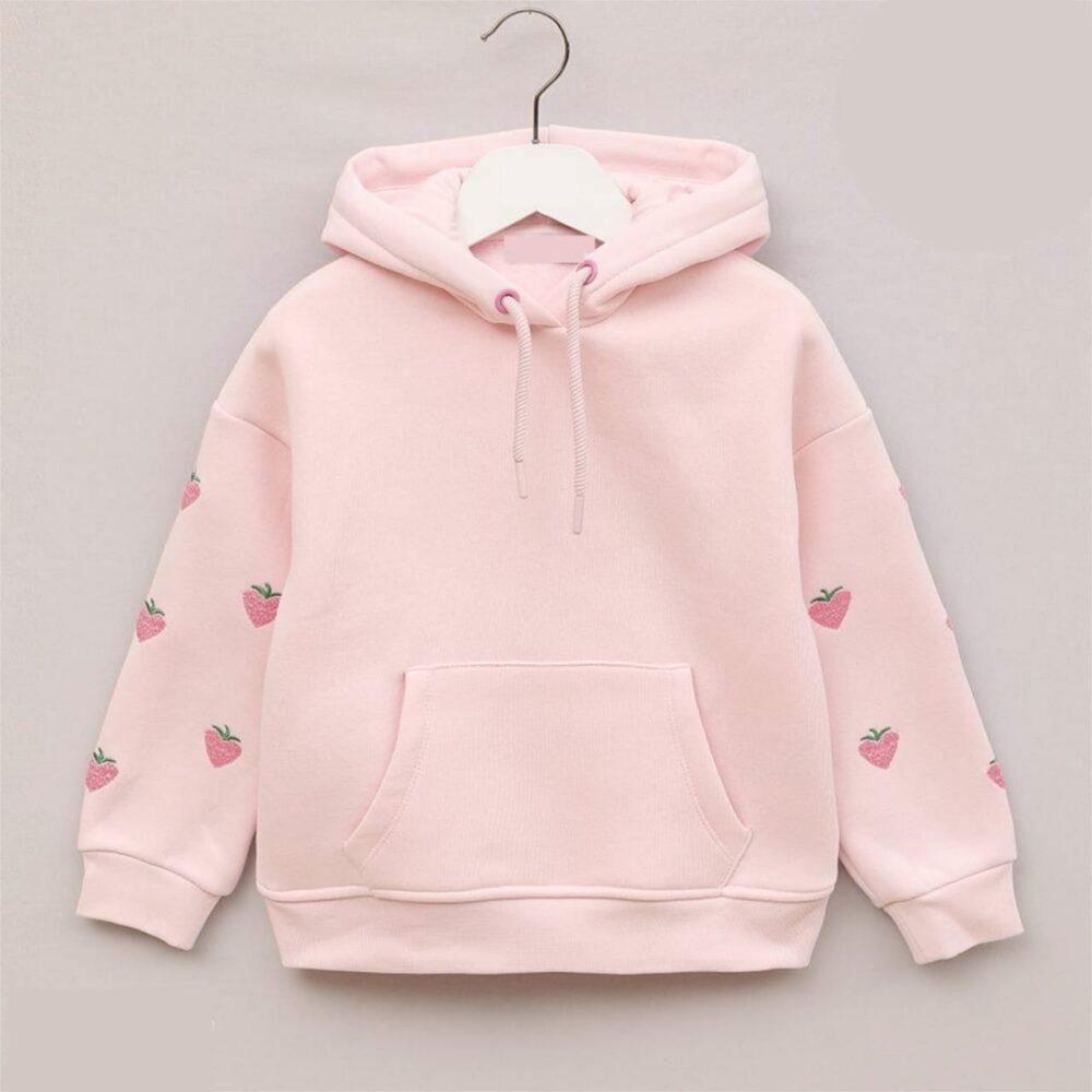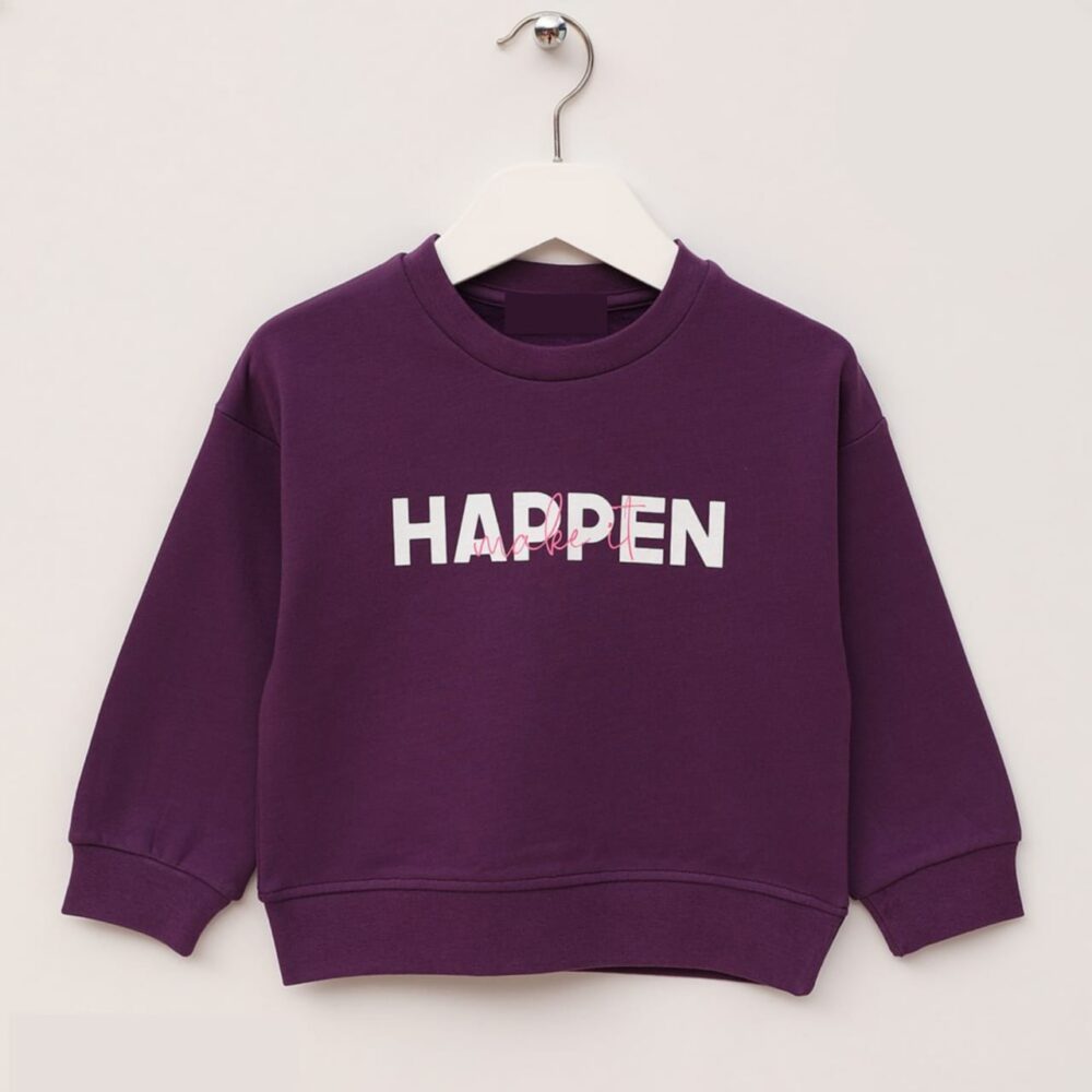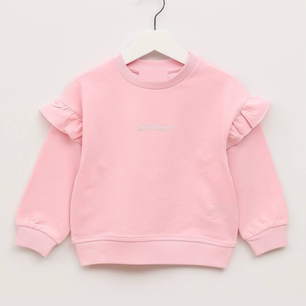 Pink “Bonheur” Ruffle Shoulder Sweatshirt